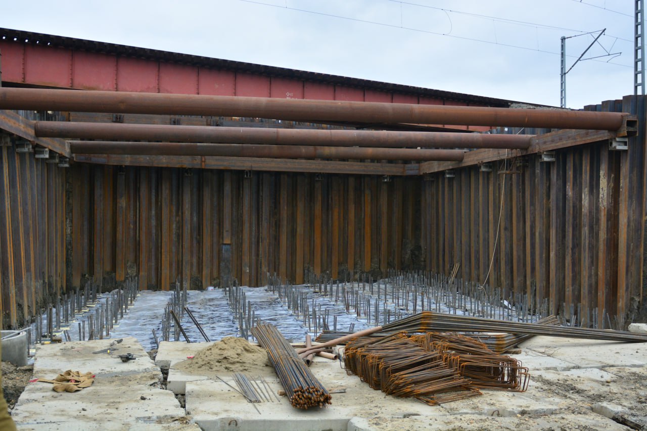 Работы по строительству тоннеля под первым железнодорожным полотном вступили в активную фазу. В настоящее время завершён один из важнейших этапов – закладка свайного фундамента. Свайное поле является основой для будущего тоннеля, играя решающую роль в обеспечении его надёжности и долговечности.