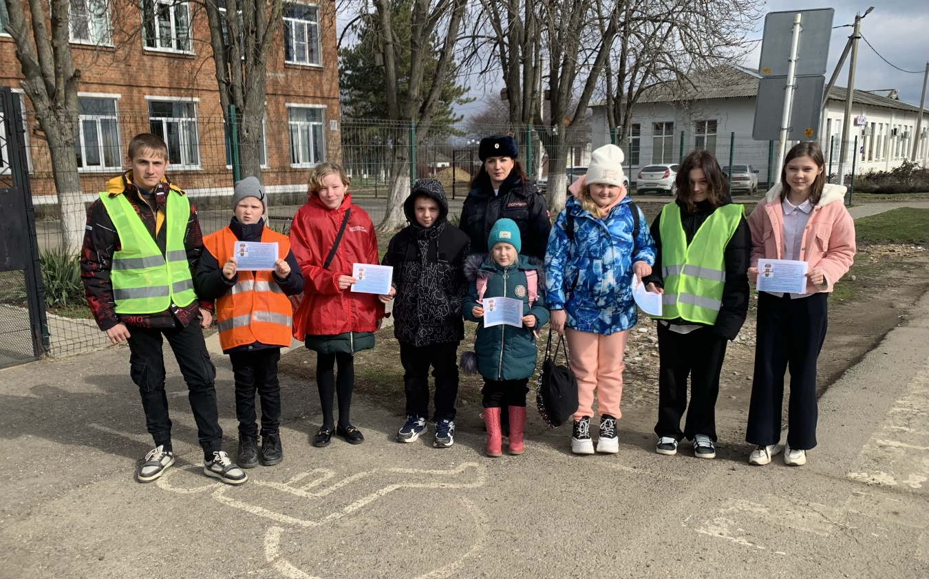 Сотрудники ГАИ совместно с ЮИДовцами и активистами «Молодежного патруля» провели профилактическое мероприятие «Будь внимательнее, пешеход!» с учащимися СОШ № 10 станицы Придорожной.