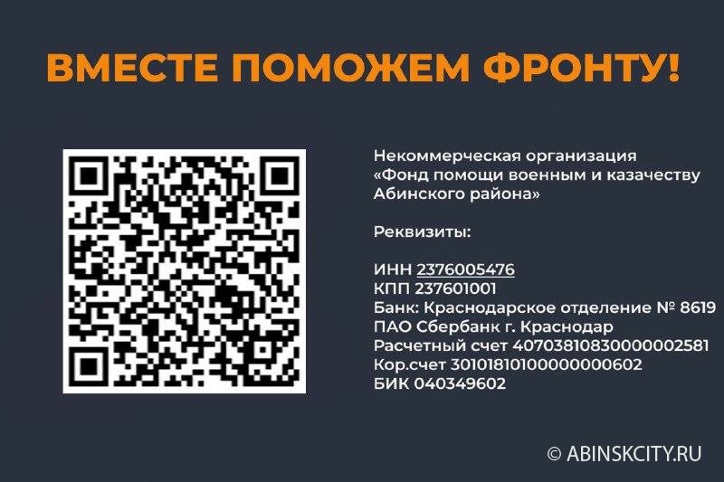 В Абинском районе ведет работу «Фонд помощи военным и казачеству». Все средства, собранные фондом, направляются на поддержку участников СВО. Внести свой вклад можно также пройдя по ссылке: