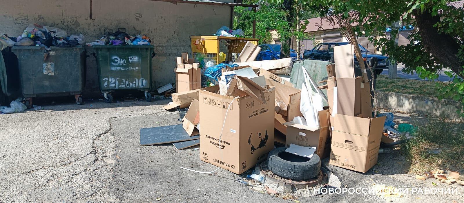 Фото Анатолия Позднякова. Типичная ситуация последних дней.Она настолько очевидна, что, когда на аппаратном совещании в администрации Новороссийска, была заявлена эта тема, глава города Андрей Кравченко отказался выслушивать сообщение руководителя ООО «Экоюг» Натальи Рашковецкой. Ведь сегодня уже каждому жителю ясно, что предприятие – региональный оператор по вывозу твердых коммунальных отходов не справляется со своими обязанностями.