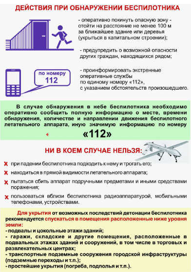Если вы услышали звук дрона на улице, первое, что нужно сделать, - это найти любое укрытие: подъезд, паркинг, подземный переход, яму или подвал. Затем, если вы определили направление полёта дрона или видели его, позвоните по номеру 112 и сообщите о том, что увидели.