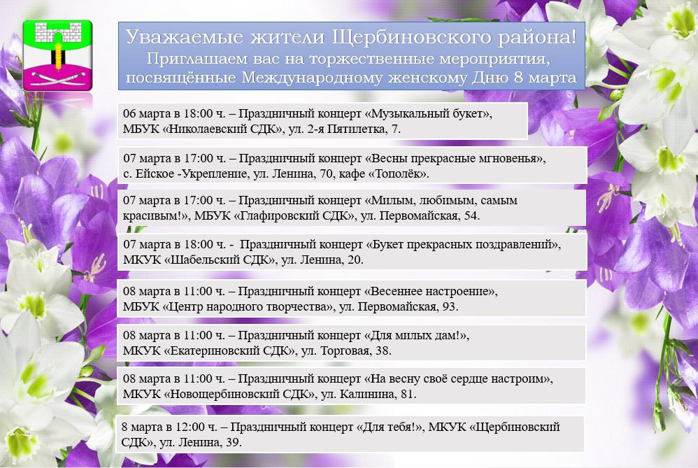 Жителей района приглашаем на праздничные концерты, посвященные Международному женскому дню