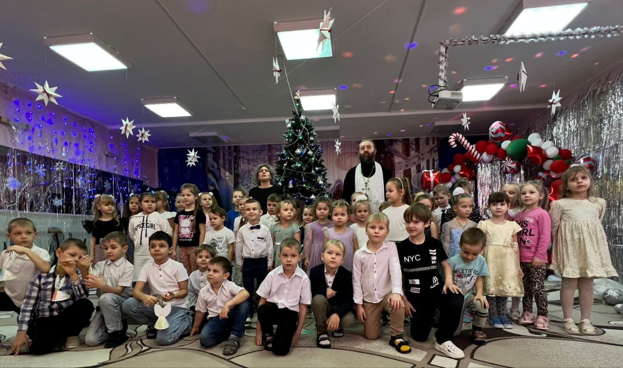 Как обычно, к ребятам пришёл отец Олег, священник храма Георгия Победоносца. Он поздравил всех детей и гостей с праздником Рождества!